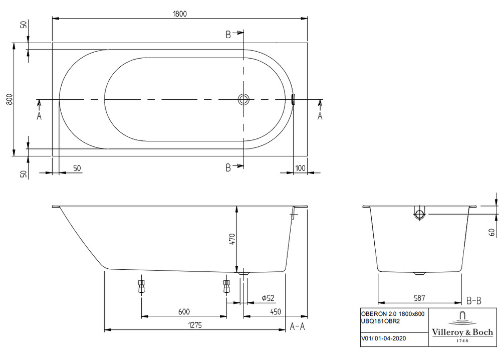 Квариловая ванна Villeroy & Boch Oberon 2.0 UBQ181OBR2DV-01 белый