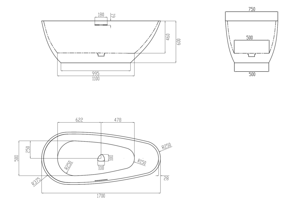 Ванна из искусственного камня ABBER Dortmund AM9911 белая матовая