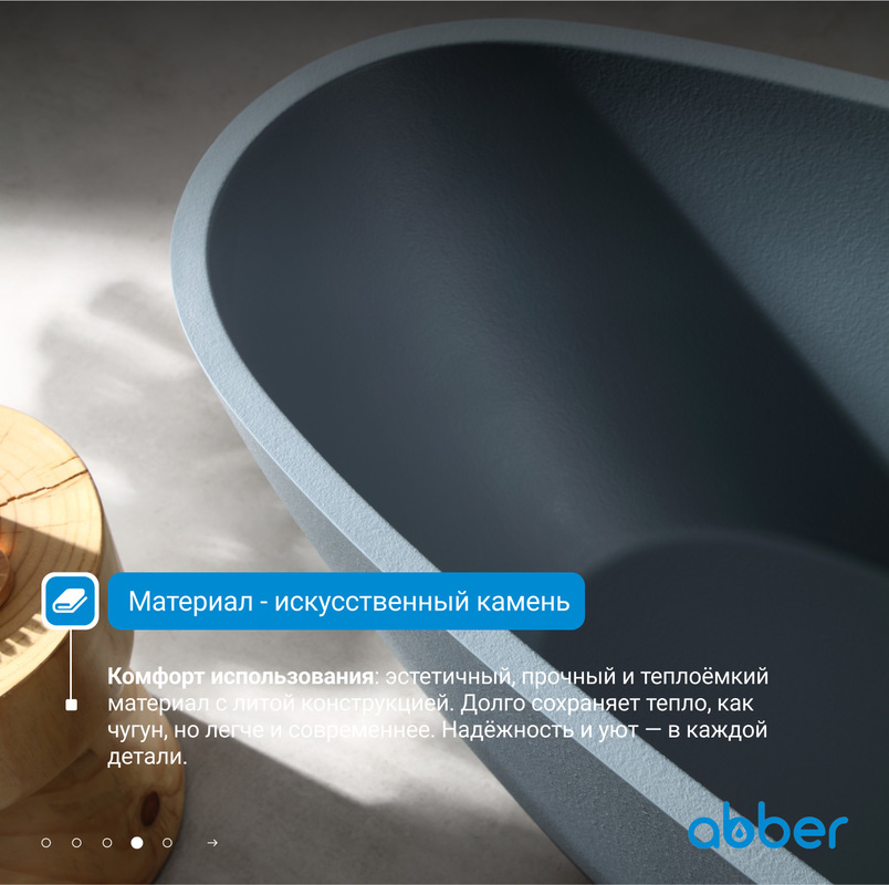 Ванна из искусственного камня ABBER Dortmund AM9911G серая матовая