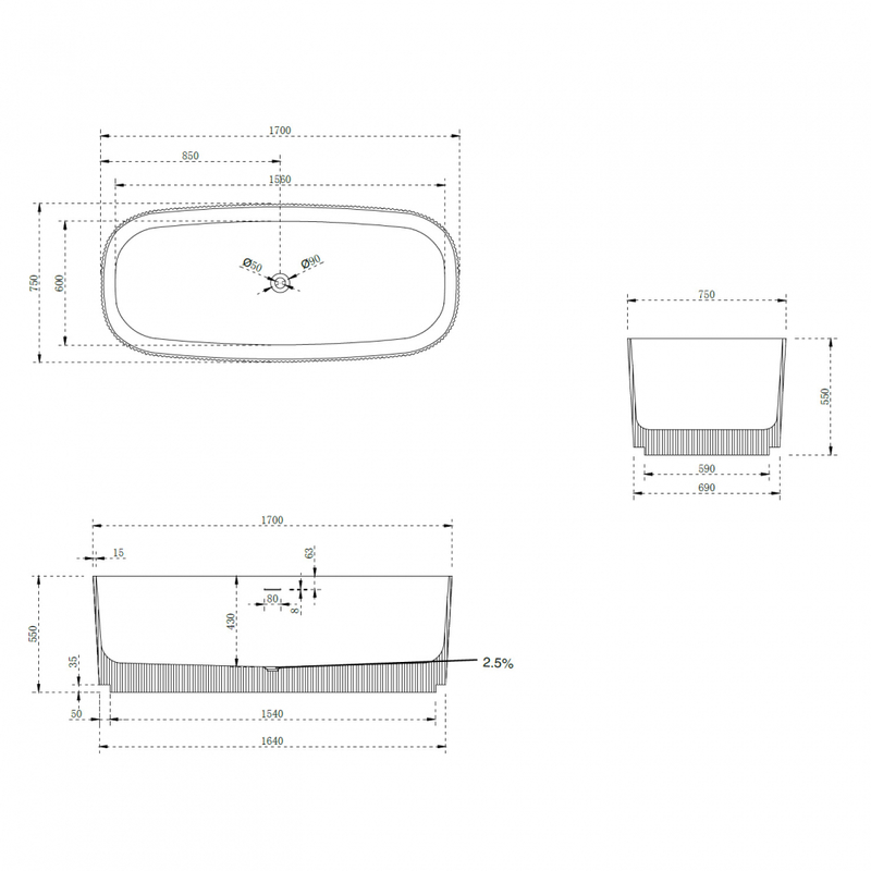 Ванна из искусственного камня ABBER Stein AS9601 белая матовая