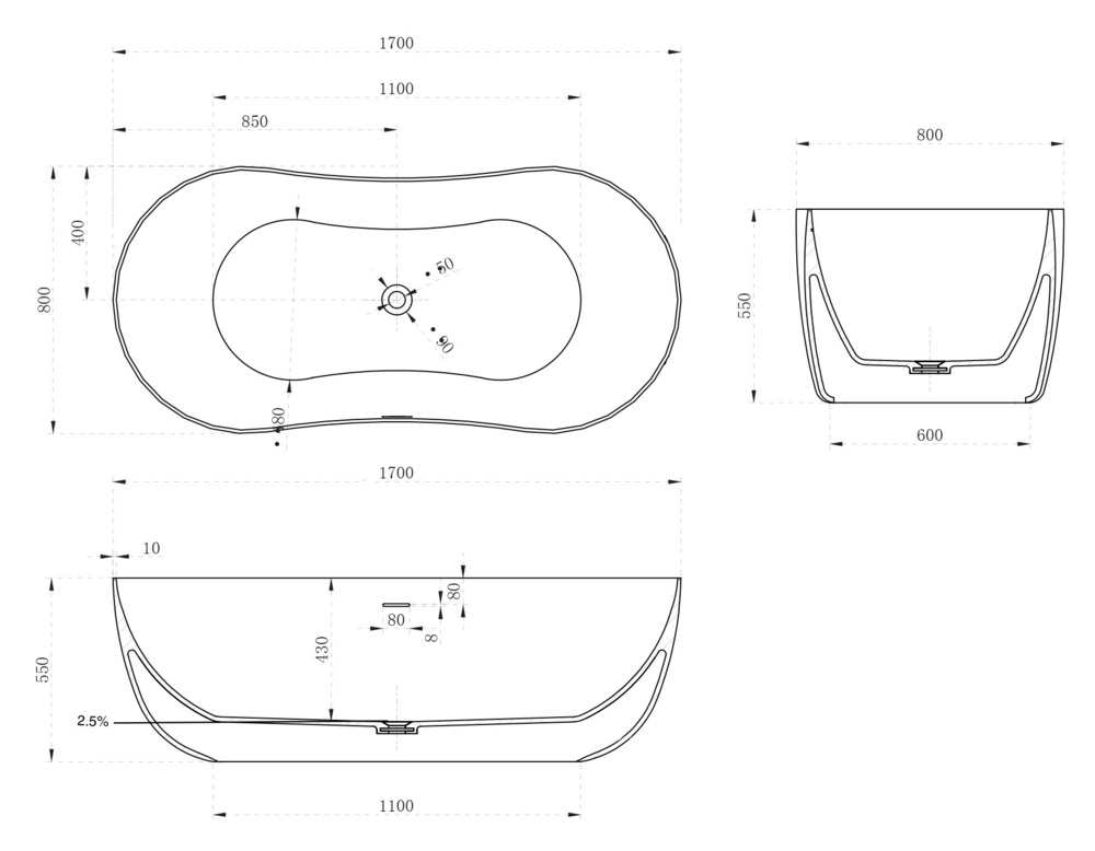 - Расположение слива: по центру
