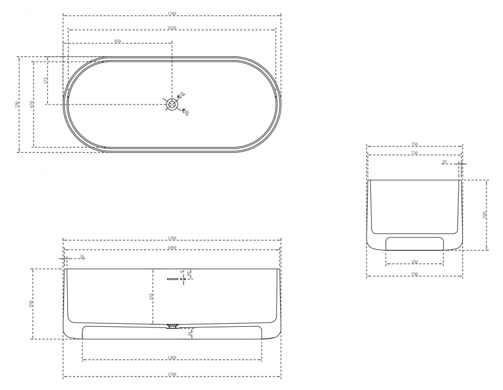 Ванна из искусственного камня ABBER Stein AS9607 белая матовая