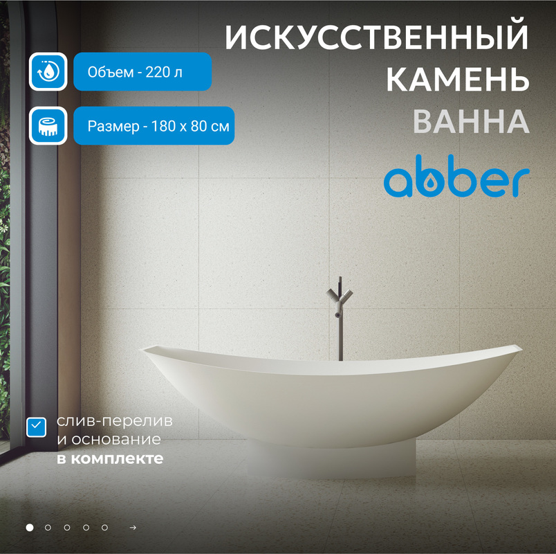 Ванна из искусственного камня ABBER Stein AS9610 белая матовая