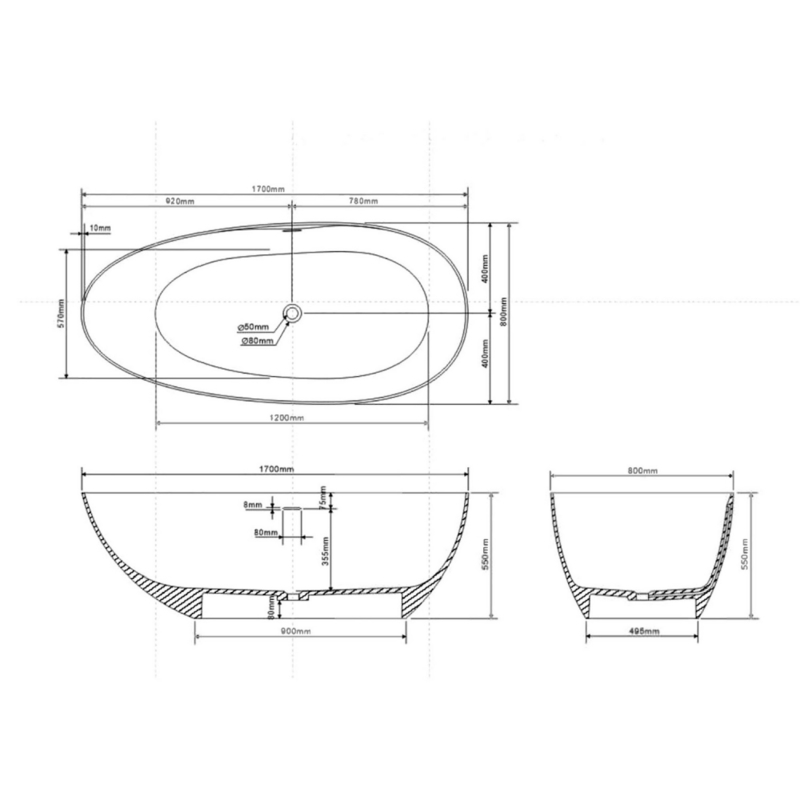 Ванна из искусственного камня ABBER Stein AS9611NM-1.7 белая матовая