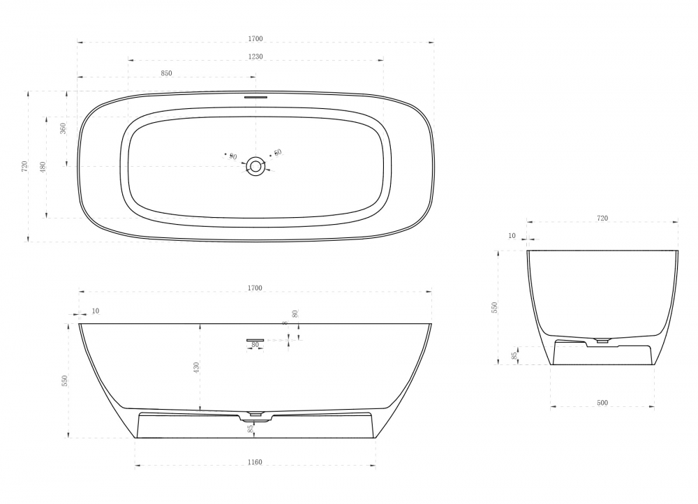 Ванна из искусственного камня ABBER Stein AS9612-1.7 белая матовая