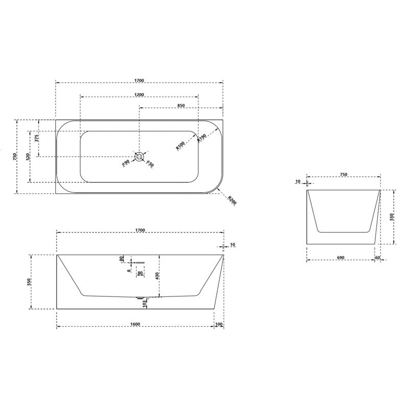Ванна из искусственного камня ABBER Stein AS9621-1.7 L белая матовая