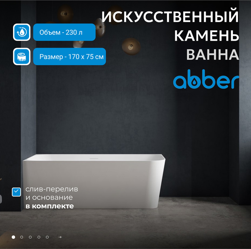 Изделия из искусственного камня ABBER Stein обладают высокой прочностью и устойчивостью к механическим повреждениям, а также не подвержены коррозии и влиянию агрессивных сред. Благодаря этому, они сохраняют свой первоначальный вид на протяжении многих лет и не требуют специального ухода.