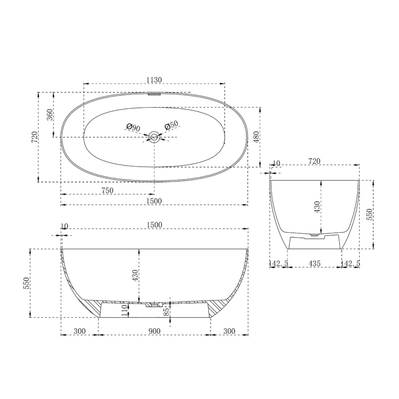 Ванна из искусственного камня ABBER Stein AS9624-1.5 белая матовая