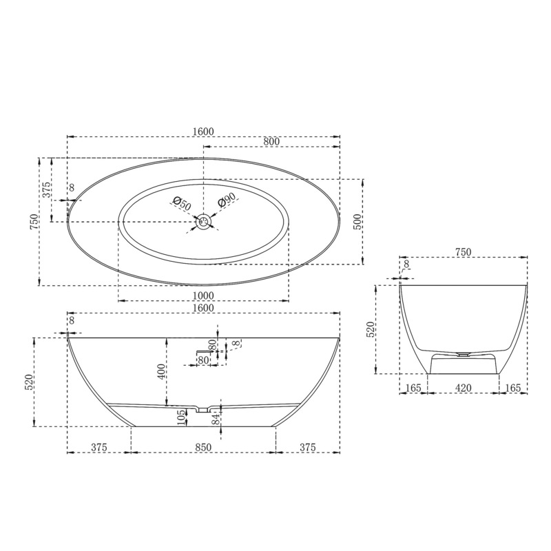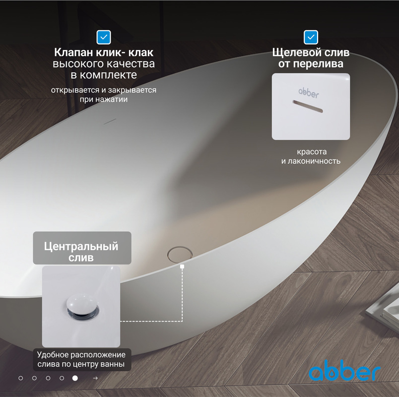 Ванна из искусственного камня ABBER Stein AS9625-1.6 белая матовая