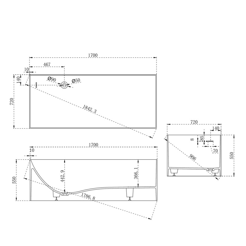 Ванна из искусственного камня ABBER Stein AS9640-1.7 белая матовая