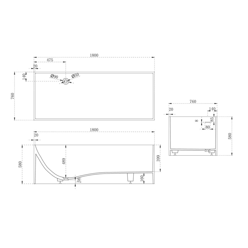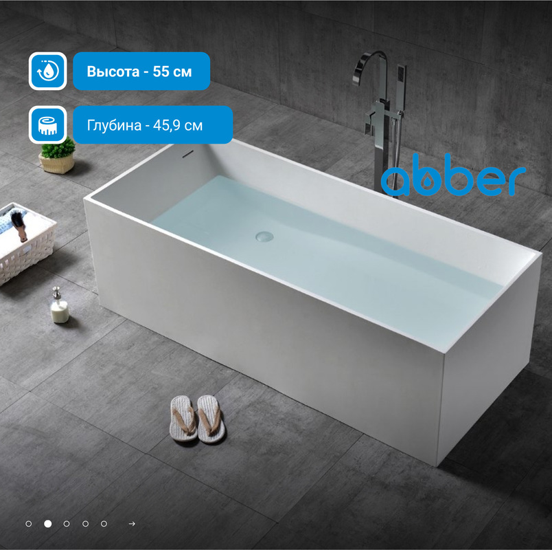 Ванна из искусственного камня ABBER Stein AS9642-1.8 белая матовая