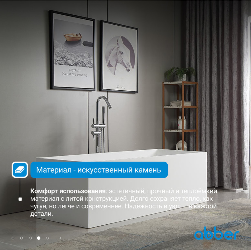 Изделия из искусственного камня ABBER Stein обладают высокой прочностью и устойчивостью к механическим повреждениям, а также не подвержены коррозии и влиянию агрессивных сред. Благодаря этому, они сохраняют свой первоначальный вид на протяжении многих лет и не требуют специального ухода.