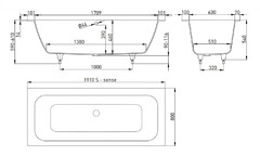 Она предназначена как для полного или частичного встраивания, так и для любой установки — пристенной, угловой или отдельно стоящей. Ванна характеризуется одинаковым уклоном бортов и расположенными посередине сливом-переливом и донным клапаном. Название модели Axis («Ось») отражает характерную симметрию ванны во фронтальной проекции.