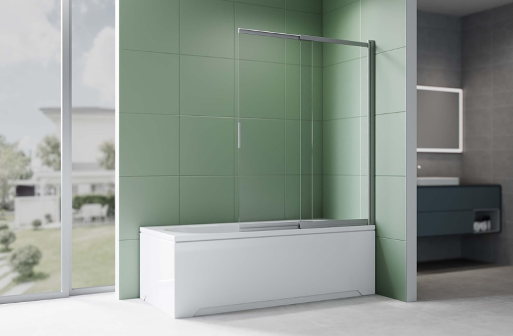 Шторка на ванну Aquatek 100х150 AQ.BSS.100.1GM профиль Оружейная сталь стекло прозрачное